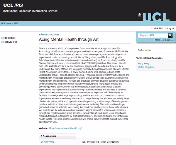 We aim to understand the effectiveness of the ARTSMH program in helping students maintain good mental wellbeing—specifically, whether regular practice of art and self-reflection in non-therapeutic settings can help maintain and improve mental health. Beyond measuring the program's effectiveness, we also seek to help UCL students better understand and experience the power of arts in creating and sustaining mental wellbeing. Participants were encouraged to reflect, explore, and express themselves in these sessions.